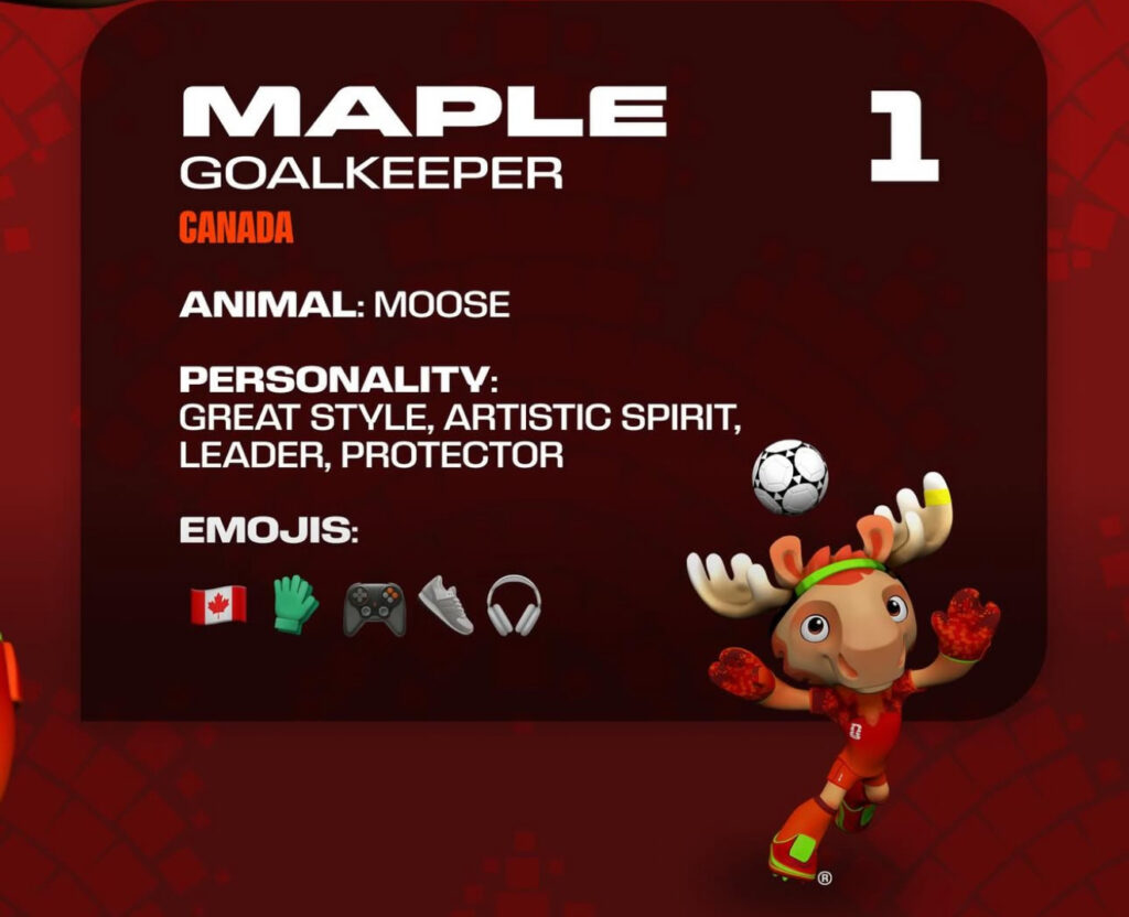 Los tres simpáticos personajes, Maple™, el alce canadiense; Zayu™, el jaguar mexicano, y Clutch™, el águila americana, fueron creados para dar vida a la riqueza cultural, el legado y el espíritu de cada país anfitrión, y para transmitir un mensaje de unión, diversidad y pasión por el deporte más popular del mundo.