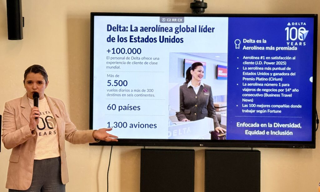 “El nombre Delta deriva del Delta del Mississippi. Es una creación de una mujer llamada Catherine FitzGerald, quien sugirió el nombre al fundador de Delta como una forma de rendir homenaje a la región agrícola que fue fundamental para el éxito de la aerolínea”, explicó Soledad Lago Rodríguez, directora de Comunicaciones de Delta para América Latina, ante un grupo de medios de prensa.