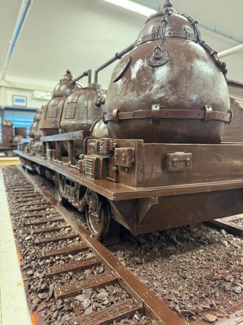 El gigantesco tren de chocolate será evaluado por jueces oficiales de Guinness World Records, que medirán su tamaño para certificar si se convierte en la escultura de chocolate más larga del planeta.