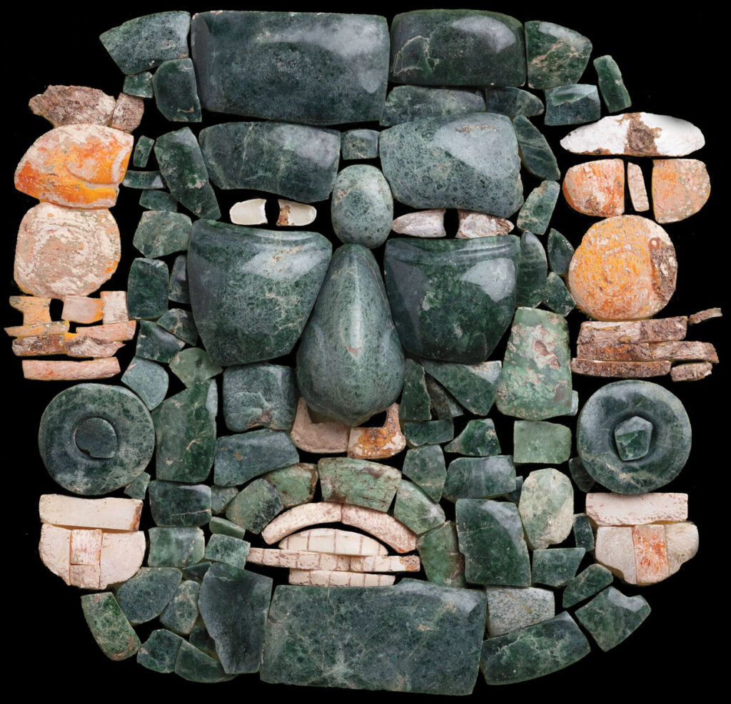 Cuando los miembros del equipo ingresaron al vacío, encontraron una cámara funeraria rectangular de dos metros de altura cuyas paredes estaban cubiertas de cinabrio rojo, evidencia de que el difunto era una persona de gran importancia. Los artefactos hallados en el suelo de la cámara incluían vasijas de cerámica, joyería de jadeíta y tubos de hueso tallado, que los arqueólogos han datado estilísticamente en el reinado de Te’ Kab Chaak, que concluyó alrededor del año 350 d. C.El objeto más excepcional fue una máscara mortuoria de mosaico de jade y concha que alguna vez cubrió el rostro del rey maya.