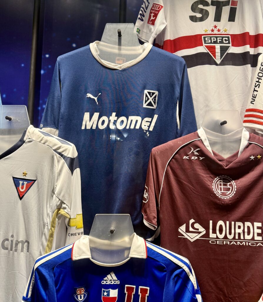 Las vitrinas también exhiben camisetas de clubes legendarios del continente como Peñarol y Nacional de Uruguay, Olimpia de Paraguay, Independiente, Boca Jr, River Plate, Argentinos Jr., Estudiantes de La Plata y Lanús de Argentina, además de otras instituciones que marcaron la historia del fútbol sudamericano.