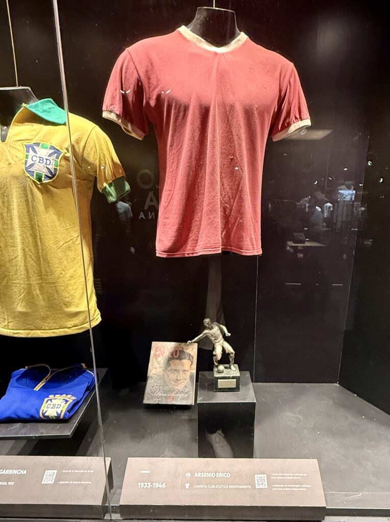 Una de las piezas más valiosas es una camiseta original de Arsenio Erico, el delantero paraguayo que se convirtió en el máximo goleador histórico del fútbol argentino, ídolo eterno de Independiente y una de las grandes figuras del deporte en el continente.